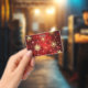 Crachá Flocos de Neve Dourados de Natal em Fundo Vermelho