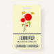 Nome de etiqueta com um desenho encantador de várias flores brancas e brancas, com corações gordos acoplados a um caule verde. 2 borboletas amarelas pairando perto. Desenhado com um contorno preto. Design Whimsical e fofo.