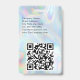 Um design moderno minimalista com fonte elegante para nome personalizado e informações de evento. Tipo de letra preto clássico com os seus detalhes num fundo de arco-íris holográfico Mylar. O crachá de nome pode ser personalizado com o seu nome, informações de contato e identificadores de mídia social. O código QR pode ser personalizado para ser direcionado ao seu site. Debra Valencia, uma artista visionária de padrões de superfície, designer de produtos e empresária com paixão pela viagem mundial, tradições artísticas, pop e tendências da moda, tem classificado o estilo californiano de forma exclusiva. Seus coloridos produtos de chic são encontrados no mercado licenciado de estilos de vida, atraindo mulheres que amam estilo, moda e feminilidade. A marca licenciou-se com mais de 50 fabricantes de presentes, artigos de papelaria, artesanatos, têxteis, decoração doméstica, acessórios de moda e beleza. Para mais informações sobre os produtos, classes e serviços de design da Debra, contacte www.debravalencia.com
