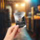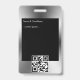 Crachá de identificação elegante e sofisticado em prata e preto para conferências ou exposições empresariais para pequenas empresas com código QR e foto. Personalize facilmente o design para tornar seus crachás totalmente exclusivos para o evento da sua empresa. Código QR de segurança adicional e texto personalizado no verso para termos e condições ou outros detalhes.