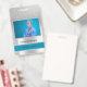 Um crachá de identificação empresarial para empresas, incluindo uma foto pessoal, logotipo da empresa e nome da empresa.
