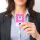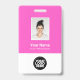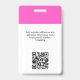 Personalize facilmente este Crachá de Nome de Funcionário Personalizado com Foto, Código Qr de Leitura (legível, funciona!) e logotipo da empresa. Um design simples de negócios em cores rosa neon moderno e branco totalmente personalizável nas tamanhos da frente e verso, fontes básicas e modernas sem serifa e um visual profissional e claro. Disponível com cordão, clipe de metal ou retrátil. Sem pedido mínimo.