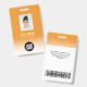 Personalize facilmente este Crachá de Nome de Funcionário Personalizado com Foto, Código de Barras e logotipo da empresa com um gradiente ombre branco no fundo cor violeta orquídea. Um design empresarial simples em cores alegres e coloridas laranja tangerina e branco totalmente personalizável na frente e verso, tamanhos, fontes básicas sans-serif e modernas e um visual profissional e claro. Disponível com cordão, clipe de metal ou retrátil. Sem pedido mínimo.