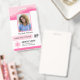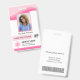 Este crachá de identificação com foto oferece uma combinação de funcionalidade e elegância, apresentando um design moderno em rosa.