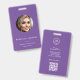 O cartão QR de foto para identificação de funcionários modernos é uma maneira elegante e profissional de exibir as informações dos seus funcionários, com recursos personalizáveis para se adequar à sua marca. Este crachá inclui uma foto, logotipo e nome, todos exibidos em um fundo roxo minimalista. O cartão de alta qualidade é durável e duradouro, perfeito para uso diário em qualquer local de trabalho. Os elementos personalizáveis tornam-no uma solução versátil e prática para qualquer empresa ou organização.
