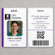 Um modelo de crachá de identificação de enfermeiro pediátrico profissional com espaço para sua foto, nome, cargo, número de identificação e logotipo personalizado. Projetado com uma paleta de cores roxas limpas, este crachá é ideal para enfermeiros pediatras, pediatras, especialistas em vida infantil e equipe médica que trabalham em hospitais ou clínicas infantis. A parte de trás inclui espaços reservados para código de barras, código QR e detalhes de contato em caso de perda para maior segurança. Perfeito para hospitais, consultórios de pediatria e organizações de saúde que precisam de identificação personalizável para funcionários.