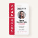 Crachá de identificação de fotos de um passe de imprensa negro e moderno. O design apresenta "Press Pass", exibido ao longo do lado, para uma fácil visualização e identificação. A foto é exibida em círculo para criar um olhar moderno. Personalizar com logotipo, foto, título do trabalho, data de adesão/validade e número de ID. O verso apresenta um design branco e lacrimejante com um logotipo e endereço. A cor pode ser alterada para qualquer cor que se ajuste à sua marca, basta clicar em personalizar e clicar para personalizar ainda mais.