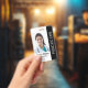 Personalize facilmente este crachá de identificação de funcionário do hospital profissional no estilo minimal azul com seus detalhes personalizados.