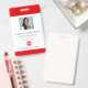 ID de crachá do funcionário do hospital moderno com fundo vermelho e branco. Muito fácil de personalizar. Desenhada por Patricia Alvarez.