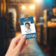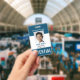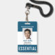 Crachá de identificação de funcionário simples e elegante. Design apresenta foto do solteiro, nome da empresa, título, data de entrada válida, logotipo no endereço frontal e de retorno e código do bar no verso.