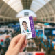 Personalize facilmente este crachá roxo de ID de foto de funcionário do hospital profissional no estilo minimal azul com seus detalhes personalizados.
