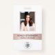 Este rosa metálico moderno, falso, chamado de funcionário da empresa chamado ID foto crachá é perfeito para qualquer profissão ou emprego e é um crachá simples, mas na moda que exude classe e profissionalismo. O elegante visual metálico cor-de-rosa-rosa cor-de-rosa em branco e tipografia dá a ele um visual elegante sofisticado que fará seu crachá se destacar. Você pode personalizá-lo com sua foto, nome, título, logotipo, site de código QR ou qualquer outro detalhe personalizado.