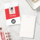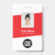 Personalize facilmente este Crachá de Nome de Funcionário moderno personalizado com Foto, Código de Barras e logotipo da empresa. Um design empresarial simples em cores vermelhas e brancas totalmente personalizável nos tamanhos da frente e verso, fontes básicas e modernas sem serifa e um visual profissional e claro. Disponível com cordão, clipe de metal ou retrátil. Sem pedido mínimo.