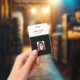 Fundo preto e branco moderno, elegante e simples, com quadro preto-e-ouro para logotipos e fotos. Monograma opcional