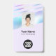 Personalize facilmente este Crachá de Nome do Funcionário do Pastel Preto Holográfico Personalizado com Foto, Código de Bar de Análise e logotipo comercial. Um design de negócios moderno colorido e ousado em cores pastel para bebês totalmente personalizável em tamanhos frontais e traseiros, fontes básicas e modernas sans-serif e um aspecto profissional e legal. Disponível com jardim, clipe de metal ou com retratável. Sem ordem mínima.