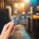 Crachá de identificação com foto personalizada para sua empresa de topografia/mapeamento/desenvolvimento, apresenta ícone de topografia em branco com texto personalizável em fundo cinza escuro .