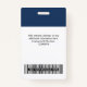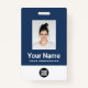 Personalize facilmente este Crachá de Nomes de Funcionários Personalizados com Foto, Código de Bar de Varredura e logotipo comercial. Um design comercial simples, com cores azul e branco marinho totalmente personalizável nos tamanhos frontal e traseiro, fontes básicas e modernas sans-serif e uma aparência profissional e clara. Disponível com ferro-velho, clipe de metal ou com retrátil. Sem ordem mínima.