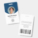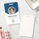 Personalize esses crachás verticais azuis de funcionários com uma foto de funcionário, logotipo da empresa, código de bar, ID e nome do funcionário.