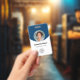 Crachá Foto Personalizada Azul, Logotipo, Código de Barra