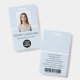 Dê à sua equipe uma aparência profissional e elegante com este crachá de funcionários totalmente personalizável. Com espaço para uma foto, código de barras, logotipo da empresa e nome do funcionário, este design moderno é perfeito para escritórios corporativos, funcionarios de varejo, eventos e conferências. Uma maneira prática e na moda para melhorar a segurança no local de trabalho e mostrar sua identidade marca.