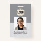 Foto personalizada do funcionário, código do Bar, logotipo, Crachá de nome, ID, Cartão de identificação Personalize facilmente este Crachá de nome de funcionário personalizado com foto, código de Bar de digitalização e logotipo comercial. Um simples design de negócios em cores azul e branco marinho totalmente personalizável em tamanhos frontais e traseiros, fontes básicas e modernas sans-serif e um visual profissional e claro. Disponível com jardim, clipe de metal ou com retratável. Sem ordem mínima. empresa, funcionário, padrão, clássico, varejo, pequena empresa, crachá de funcionário personalizado, hospital, clínica