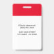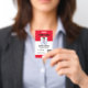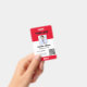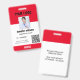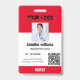 Este crachá personalizado de nome de funcionário é facilmente personalizável com uma fotografia, um scanner de código de barras e o logotipo da empresa. Um design de negócios direto, branco e vermelho, com tamanhos frontal e traseiro totalmente ajustáveis, fontes sans-serif simples e contemporâneas, e uma aparência polida disponível com um pátio, clipe de metal ou retrátil. Não há quantidade mínima do pedido.
