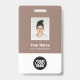Personalize facilmente este Crachá de Nome de Funcionário Personalizado com Foto, Digitalização de Código Qr (sempre legível, funciona!) e logotipo comercial. Um simples design de negócios em cores modernas, castanho claro e branco, totalmente personalizável em tamanhos frontais e traseiros, fontes básicas e modernas sans-serif e um olhar profissional e claro. Disponível com jardim, clipe de metal ou com retratável. Sem ordem mínima.