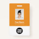 Personalize facilmente este Crachá de Nome de Funcionário Personalizado com Foto, Digitalização de Código Qr (sempre legível, funciona!) e logotipo comercial. Um simples design de negócios em laranja tangerina moderna e cores brancas totalmente personalizável em tamanhos frontais e traseiros, fontes básicas e modernas sans-serif e um olhar profissional e claro. Disponível com jardim, clipe de metal ou com retratável. Sem ordem mínima.