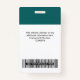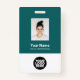 Personalize facilmente este Crachá de Nome de Funcionário Personalizado com Foto, Código de Bar de Digitalização e logotipo comercial. Um simples design de negócios com cores verdes escuras e brancas extremamente personalizáveis em tamanhos frontais e traseiros, fontes básicas e modernas sans-serif e uma aparência profissional e clara. Disponível com jardim, clipe de metal ou com retratável. Sem ordem mínima.