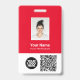 Personalize facilmente este Crachá de Nome de Funcionário Personalizado com Foto, Scan QrCode e Código de Bar e logotipo comercial. Um simples design de negócios na visão que mostra cores vermelho e branco a fogo em negrito totalmente personalizáveis em tamanhos frontais e traseiros, fontes básicas e modernas sans-serif e uma aparência profissional e clara. Disponível com jardim, clipe de metal ou com retratável. Sem ordem mínima.