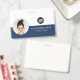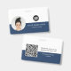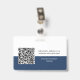 Personalize facilmente este Crachá de Nome de Funcionário Minimalista de Negócios Horizontal Personalizado com Foto, Digitalizar Código Qr ou Digitalizar Código de Bar e logotipo comercial. Um simples design de negócios com fotos redondas, em cores azul e branco marinho totalmente personalizável em tamanhos frontais e traseiros, fontes básicas e modernas sans-serif e uma aparência profissional e clara. Disponível com jardim, clipe de metal ou com retratável. Sem ordem mínima.