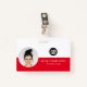 Personalize facilmente este Crachá de Nome de Funcionário Minimalista de Negócios Horizontal Personalizado com Foto, Digitalizar Código Qr ou Digitalizar Código de Bar e logotipo comercial. Um simples design de negócios com fotos redondas, com cores vermelhas e brancas perfeitamente personalizáveis nos tamanhos frontal e traseiro, fontes básicas e modernas sans-serif e um visual profissional e claro. Disponível com jardim, clipe de metal ou com retratável. Sem ordem mínima.