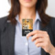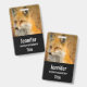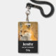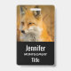 Um nome de etiqueta com uma bela fotografia de uma raposa vermelha no outono. Ficando na natureza entre a escova.