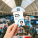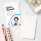 Um cartão de identidade moderno com uma grande foto redonda de funcionário no canto inferior direito. O nome do funcionário é exibido em uma fonte grande em negrito. Ideal para qualquer empresa ou empresa identificar o funcionarios. Esta versão do crachá é definida em um esquema de cor branco e azul.
