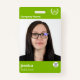 Crachá de identificação técnica de computador impressão verde moderno e profissional. Adicione qualquer nome de negócios e funcionário, foto, logotipo, endereço, número de telefone, anos, site e código de barras.