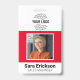 Crachá vermelho de cartão de identidade moderno para funcionários da empresa, logotipo em branco.