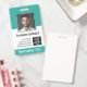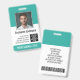 Branco e Verde Teal - Um design básico de negócios que destaca os logotipos do seu escritório e o nome do funcionário. Este design de escritório tradicional também inclui um número de ID do crachá, data de validade e enfermeira(o) ou outro título.