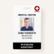 Crie seu próprio crachá de foto médica personalizada com seu logotipo, foto do funcionário, nome, departamento de emprego, código QR e informações do centro médico. Este crachá de identificação de segurança do prestador de cuidados de saúde é perfeito para enfermeiros registrados, enfermeiros certificados, médicos, lares de idosos e todos os outros funcionarios médicos. Embora seja mostrado aqui como um crachá médico, este design também pode ser usado para funcionários em todos os tipos de negócios. Basta editar os campos de texto, foto e logotipo para tornar seu próprio crachá de ID de funcionário do hospital personalizado.