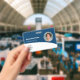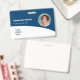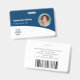 Personalize esses crachás azuis horizontais de funcionários com uma foto de funcionário, logotipo da empresa, código de bar, ID e nome do funcionário.
