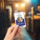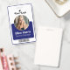 Personalize esses crachás verticais incluindo a foto e o nome de um funcionário, além de duas linhas de texto personalizado extra para detalhes como número de ID do funcionário, função ou título, local ou outras informações importantes. Coloque seu logotipo no topo. Há também um campo de texto personalizado adicional no verso para informações de devolução ou outras especificações.