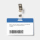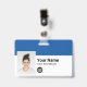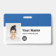 Personalize facilmente este Crachá de Nome de Funcionário Personalizado com Foto, Código de Bar de Digitalização e logotipo comercial, com clipe metálico incluído. Um simples design de negócios alinhado à esquerda em cores azul e branco cobalto totalmente personalizável em tamanhos frontais e traseiros, fontes básicas e modernas sans-serif e uma aparência profissional e clara. Disponível com ou sem jardim, clipe metálico ou com retratável. Sem ordem mínima.