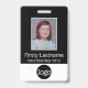 Preto - Um design comercial básico que destaca os logotipos de seu escritório e o nome do funcionário. Você pode adicionar um código de bar de digitalização à frente e atrás.