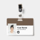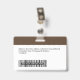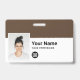 Personalize facilmente este Crachá de Nome de Funcionário Personalizado com Foto, Código de Bar de Digitalização e logotipo comercial, com clipe metálico incluído. Um simples design de empresa alinhado à esquerda em cores escuras e brancas escuras profundas totalmente personalizáveis nos tamanhos frontal e traseiro, fontes básicas e modernas sans-serif e um visual profissional e claro. Disponível com ou sem jardim, clipe metálico ou com retratável. Sem ordem mínima.