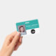 Um design básico de negócios que destaca os logotipos de seu escritório e o nome do funcionário. Você pode adicionar um código de bar de digitalização à frente e atrás.