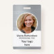 Personalizado funcionário, foto, código do Bar, logotipo, Crachá de nome Você pode personalizar este modelo adicionando sua foto, nome, profissão, logotipo da sua empresa e código do bar. Design simples profissional de prata e branco com fotograma em círculo