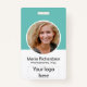 Personalizado funcionário, foto, código do Bar, logotipo, Crachá de nome Você pode personalizar este modelo adicionando sua foto, nome, profissão, logotipo da sua empresa e código do bar. Design simples prata e branca com fotograma em círculo