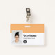 Personalize facilmente este Crachá Personalizado - Nome do logotipo profissional de empresa com fotografia, código do Bar de digitalização e logotipo comercial, com clipe metálico incluído. Um simples design de negócios alinhado à esquerda em cor laranja tangerina e branca totalmente personalizável em tamanhos frontais e traseiros, fontes básicas e modernas sans-serif e uma aparência profissional e clara. Disponível com ou sem jardim, clipe metálico ou com retratável. Sem ordem mínima.