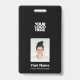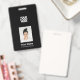 Personalize facilmente este Crachá de Nome de Funcionário Personalizado com Foto, leitura de Código de Barras e logotipo grande da empresa. Um design empresarial simples em cores preto e branco legais totalmente personalizável nas tamanhos da frente e verso, fontes básicas sans-serif e modernas e um visual profissional e claro. Disponível com cordão, clipe de metal ou retrátil. Sem pedido mínimo.
