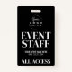 Crachá do Funcionarios de evento de acesso preto e branco. Excelente para desfiles, concertos, grandes eventos especiais como conferências, concertos, palestras, e podem até trabalhar para uma festa de aniversário ou qualquer outra parte onde você queira fazer seus convidados se sentirem especiais. Um simples visual moderno, mas elegante, com um local para adicionar sua empresa ou até mesmo logotipo no topo. Na parte inferior está uma fonte serif em negrito misturada com uma simples tipografia, com Funcionarios de Evento, o nome do evento, data e 'Todos os acessos passados'. Você pode alterar todas as informações de texto e cores deste crachá.