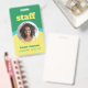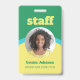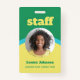 Crachá de ID vertical unilateral para o seu funcionarios em um design retroativo em verde, amarelo e azul. Personalize com a foto, o nome e o título de seu funcionário, abaixo do funcionarios, em uma fonte amarela arrojada e atraente. O crachá é simples e fácil de ler, impresso sem logotipo, em negrito e cores felizes.